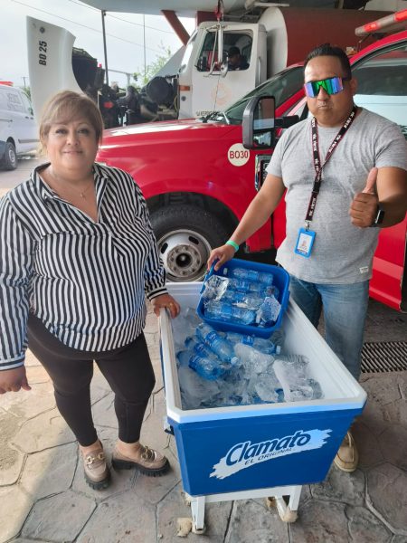 Cada punto de hidratación, cuenta con una hielera donde se mantiene el agua embotellada fresca además que son colocados bajo sombra para que los ciudadanos, además de hidratarse puedan protegerse un poco de los fuertes rayos del sol.