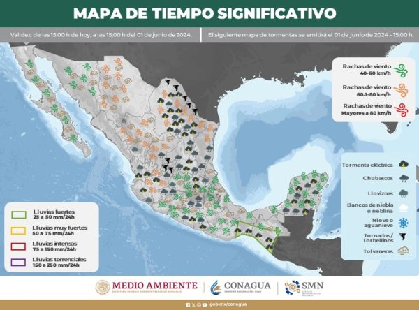 31 Mayo 2024; Saltillo, Coahuila.- La Subsecretaría de Protección Civil del Estado (PC) informa que este viernes, una circulación anticiclónica en niveles medios de la atmósfera mantendrá la tercera onda de calor sobre la República Mexicana, pronosticando temperaturas superiores a los 40 °C.