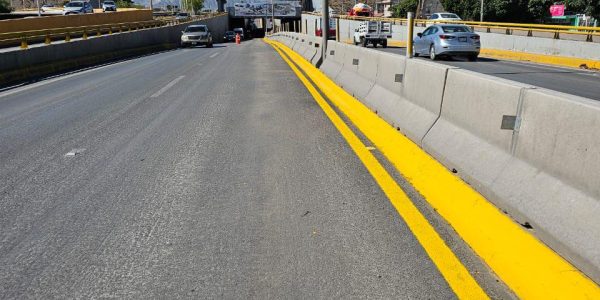 Refuerzan seguridad vial con pintura en bulevares y puentes