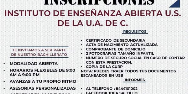 Durante Mayo Abiertas Inscripciones en el IDEA Saltillo de la UAdeC