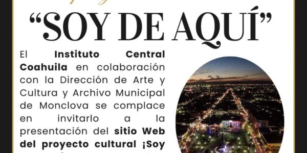 INVITAN A LA PRESENTACIÓN DEL SITIO WEB, «SOY DE AQUÍ» Por Gregorio Esparza 29 Mayo 2024; Monclova, Coahuila.- El Instituto Central Coahuila (ICC), en colaboración con el departamento de Arte y Cultura y el Archivo Municipal, se complace en invitar…