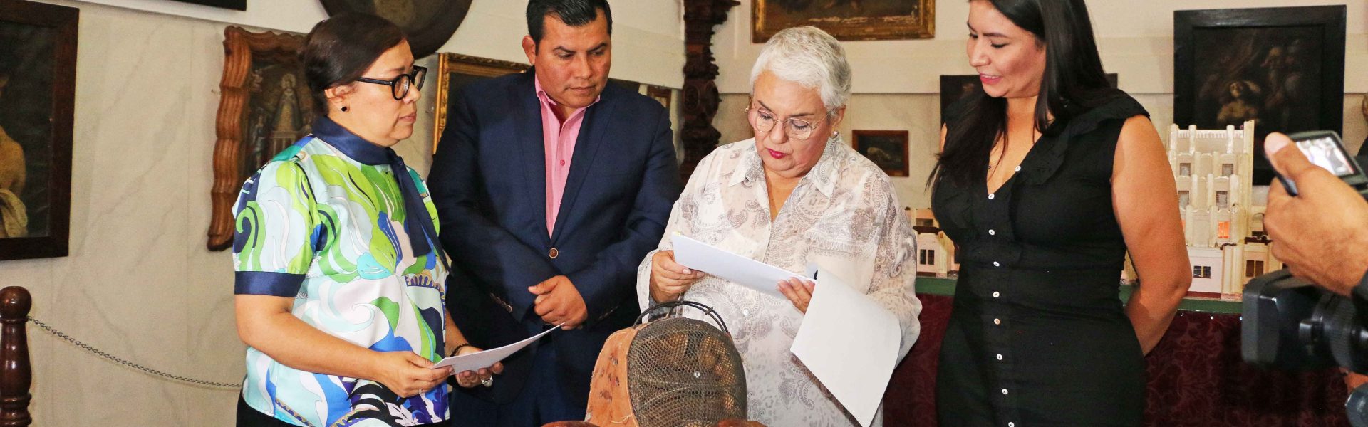 Mientras que, la encargada de la Pinacoteca, Erika Josefina Flores Padilla, dijo que el apoyo de la Secretaría de Cultura es fundamental para el rescate de la pieza y su conservación; al finalizar la reunión las autoridades realizaron un recorrido por la Pinacoteca.