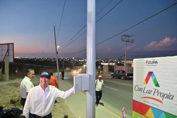 13 Junio 2024; Acuña, Coahuila.- Junto a vecinos de la colonia Cedros, el alcalde Emilio de Hoyos Montemayor accionó la palanca de encendido del sistema eléctrico de 24 luminarias de 200 watts de tecnología led, colocadas en el bulevar Cedros, lo que generará mayor seguridad durante la noche, tanto para automovilistas como para peatones.