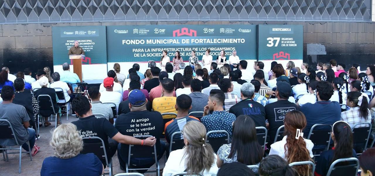 14 Junio 2024; Torreón, Coahuila.- El alcalde Román Alberto Cepeda González entregó cinco millones de pesos correspondientes al Fondo Municipal de Fortalecimiento para la Infraestructura de las Organizaciones de la Sociedad Civil, a representantes de las 37 instituciones que participaron en la convocatoria emitida por el Sistema para el Desarrollo Integral de la Familia (DIF) Torreón.