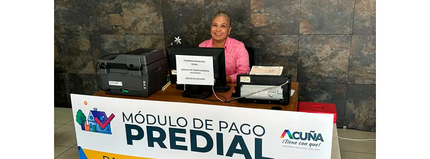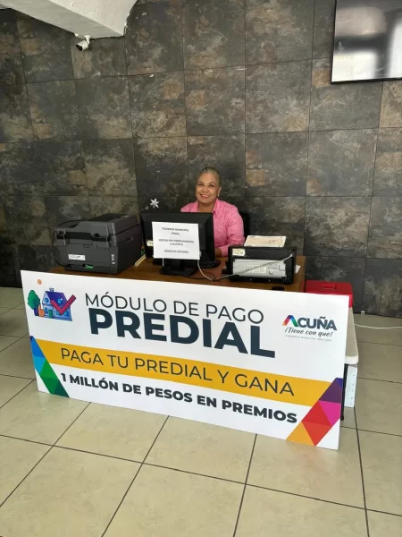 27 Junio 2024; Acuña, Coahuila.- Para la recepción de pagos del predial, pasaporte mexicano, de los servicios de panteones, alberca semiolímpica, Casa de la Cultura y Teatro Municipal, inició operaciones un módulo de la Tesorería Municipal en el edificio de SIMAS situado en Galeana y Allende de la colonia Centro.