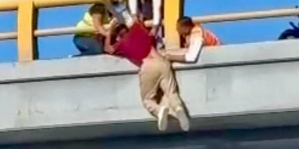 Agentes de vialidad salvan la vida de un hombre que intentó lanzarse del puente del Periférico de Torreón
