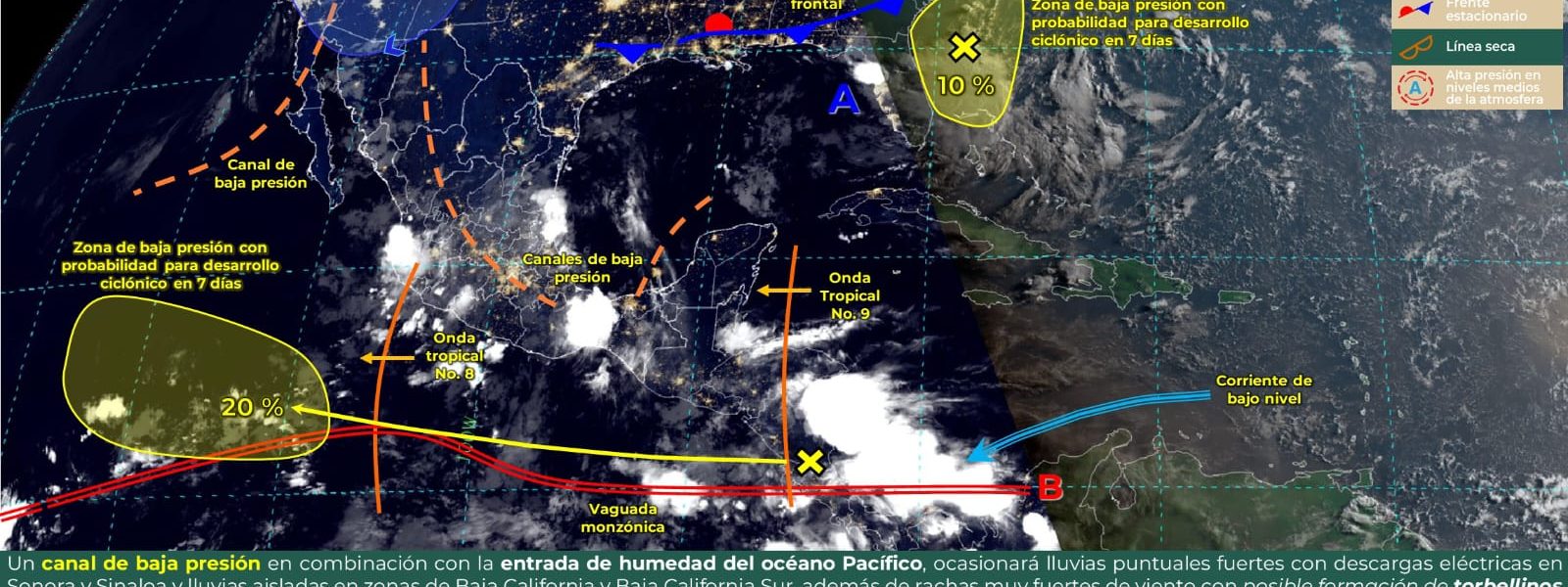 11 Julio 2024; Saltillo, Coahuila. – La Subsecretaría de Protección Civil del Estado (PC) informa que un canal de baja presión extendido sobre la Mesa del Norte, centro y oriente del territorio nacional, en combinación con la entrada de humedad del Golfo de México e inestabilidad en niveles altos de la atmósfera, producirá lluvias puntuales intensas en Coahuila.