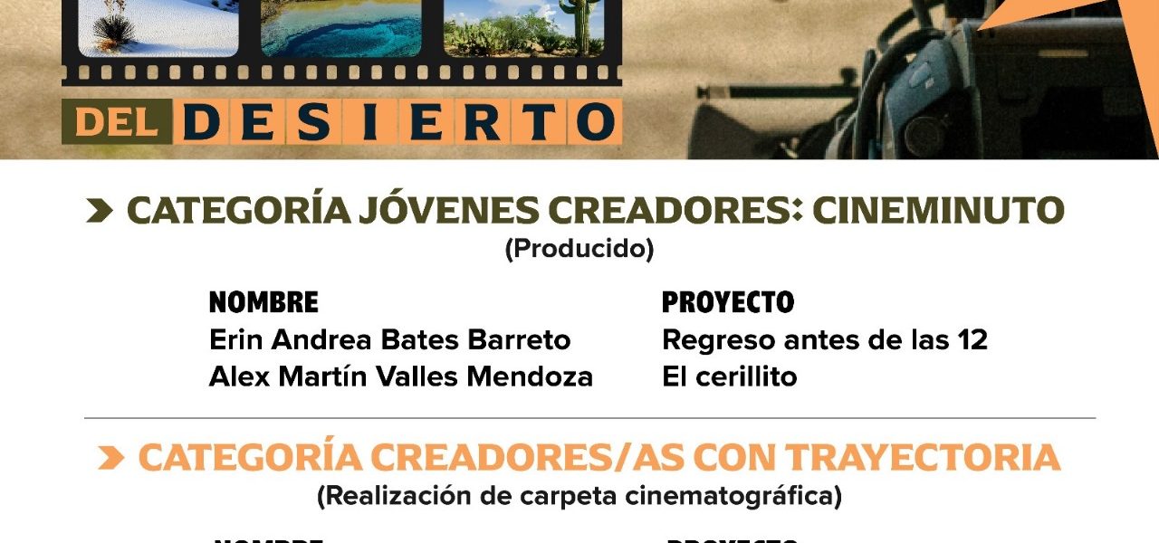 Mientras que en la categoría Creadores/as con Trayectoria (Realización de carpeta cinematográfica), con un estímulo de 160 mil pesos cada uno resultaron ganadores: Nélida Victoria Garza Ramos con “La Mujer Cara De Caballo”, y Julio Bayron Norman Valles, con “Fuerza De Hábito”.