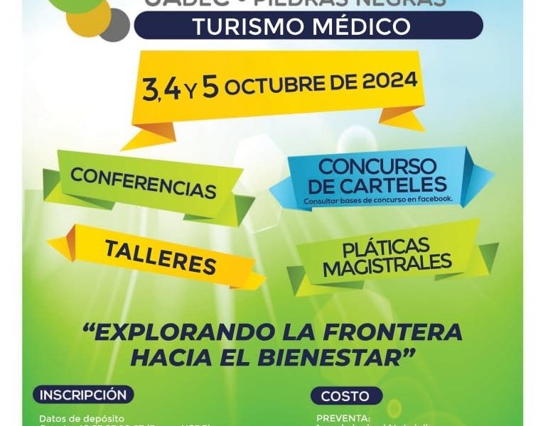 15 Julio 2024; Piedras Negras, Coahuila.- La Universidad Autónoma de Coahuila a través de la Escuela de Medicina Unidad Norte, invita al Segundo Congreso Internacional de Medicina “Explorando la Frontera Hacia el Bienestar”, el cual se llevará a cabo el 3, 4 y 5 de octubre de 2024 en el Auditorio “David Martínez Castro” en el Campus de Ciencias de la Salud en Piedras Negras, Coahuila.