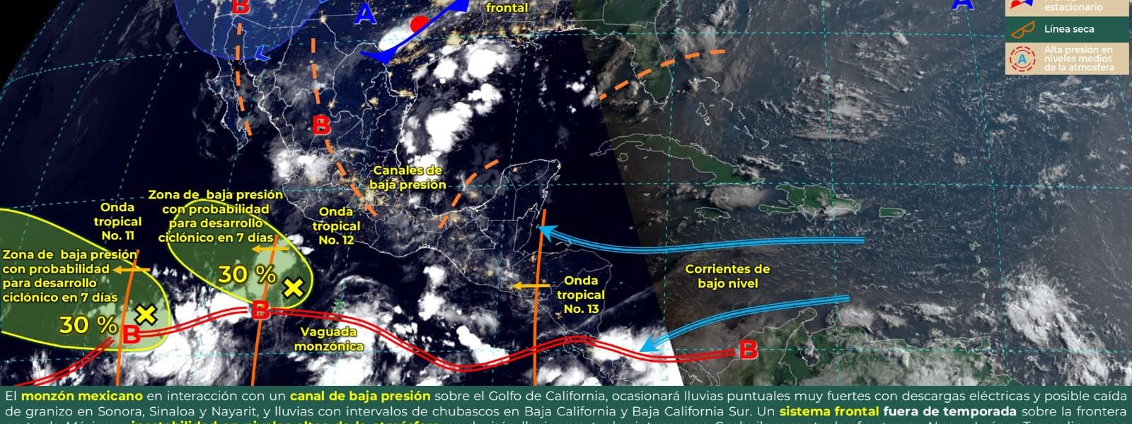 23 Julio 2024; Saltillo, Coahuila.- La Subsecretaría de Protección Civil del Estado (PC) anuncia que un frente frío atípico sobre la frontera norte de Coahuila, combinado con inestabilidad atmosférica en niveles altos, generará condiciones meteorológicas adversas. Se esperan lluvias puntuales intensas, descargas eléctricas, posible caída de granizo y la formación de torbellinos, especialmente en el norte del estado.