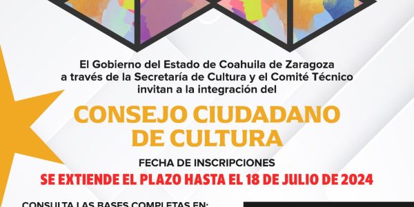 SE EXTIENDE LA CONVOCATORIA PARA LA RENOVACIÓN DE INTEGRANTES DEL CONSEJO DE CULTURA DE COAHUILA