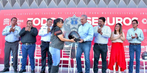 El alcalde Román Alberto Cepeda González entrega cascos a 250 motociclistas