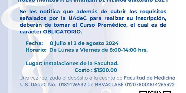 Facultad de Medicina de la UAdeC Convoca a sus Estudiantes de Nuevo Ingreso al Curso Pre Médico Obligatorio Por Jorge Moreno 10 Julio 2024; Saltillo, Coahuila.- La Universidad Autónoma de Coahuila, a través de la Facultad de Medicina Unidad Saltillo,…
