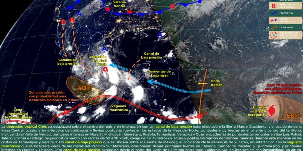 SE PRONOSTICAN CHUBASCOS Y FUERTES VIENTOS EN COAHUILA Por Jorge Moreno 1 Julio 2024; Saltillo, Coahuila – La Subsecretaría de Protección Civil del Estado (PC) informa que, para hoy, la depresión tropical Chris se desplazará sobre el centro del país…