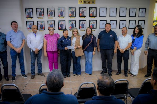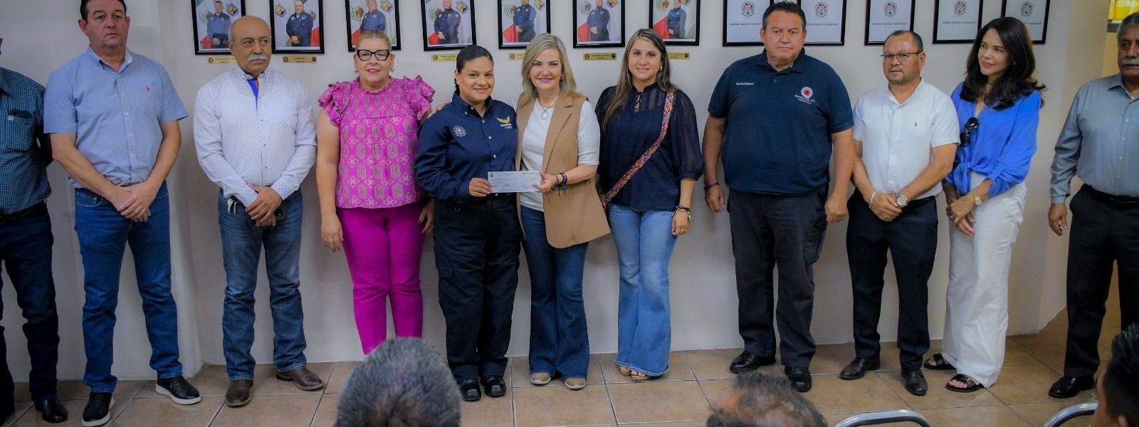 Raquel y Sandra portan el uniforme desde hace casi dos décadas que laboran en la corporación, las dos mujeres colocaron sus fotografías en el mural de honor y recibieron por sus méritos una compensación económica de manos de la Presidenta Municipal.