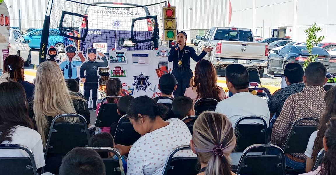 Con una serie de dinámicas informativas, los integrantes de la corporación policial se sumaron al programa interno de actividades de la compañía, localizada en el Parque Industrial Santa María, en el que participan adultos y niños.