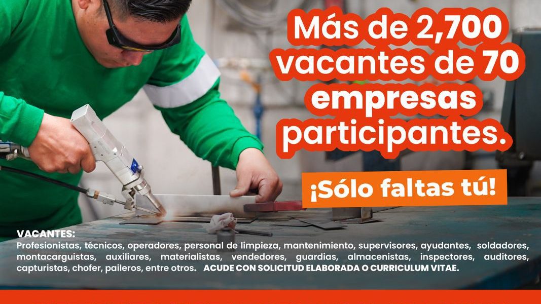 Más de 2 mil 700 vacantes estarán disponibles en esta jornada en la que se tendrá el apoyo de la Secretaría de Seguridad Pública para la expedición gratuita de Cartas de No Antecedentes Penales.
