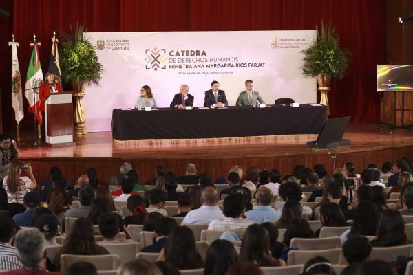 “Es un honor para nosotros en la UAdeC tener aquí a nuestra gran aliada y promotora de los derechos humanos, nuestra amiga, la ministra de la Suprema Corte de Justicia de la Nación, Ana Margarita Ríos Farjat, muchas gracias por estar aquí con nosotros y permitirnos poner su nombre a la Cátedra de Derechos Humanos con mayor alcance e importancia en el estado de Coahuila y también una de las más importantes en el norte de México”, dijo.