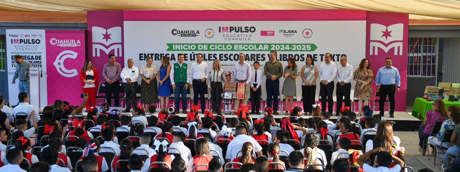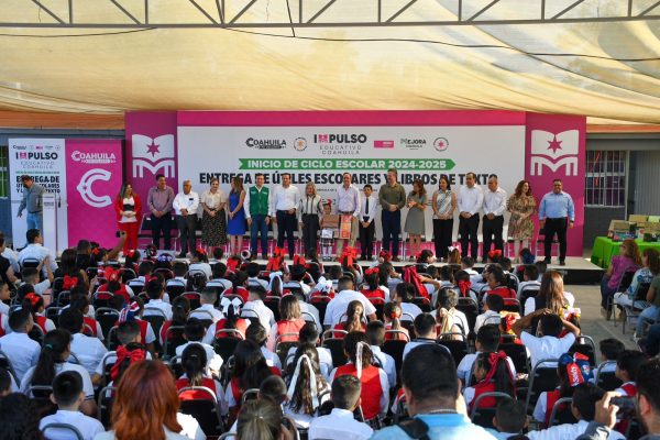 26 Agosto 2024; Piedras Negras, Coahuila.- Al encabezar, junto con el Gobernador de Coahuila Manolo Jiménez Salinas el arranque del ciclo escolar 2024-2025, la Alcaldesa Norma Treviño Galindo destacó la gran alianza construida entre el Estado y el Municipio, que se ha visto traducida en la entrega histórica de becas y apoyos escolares equivalentes a una inversión de 20.6 millones de pesos, a más de 16 mil alumnos, en 3 años de Administración Municipal, así como la construcción de infraestructura para mejorar la calidad educativa en la ciudad.