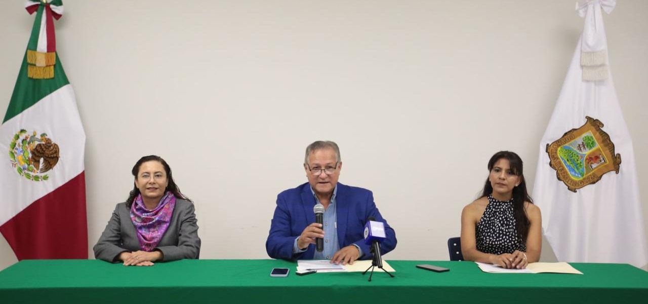 El director general del COECyT-Coahuila, ofreció la rueda de prensa, junto a la Coordinadora de Desarrollo Científico, Vanessa Martínez Sosa, y la responsable de la Unidad de Desarrollo de Capital Humano, Yadhira Rubalcaba.