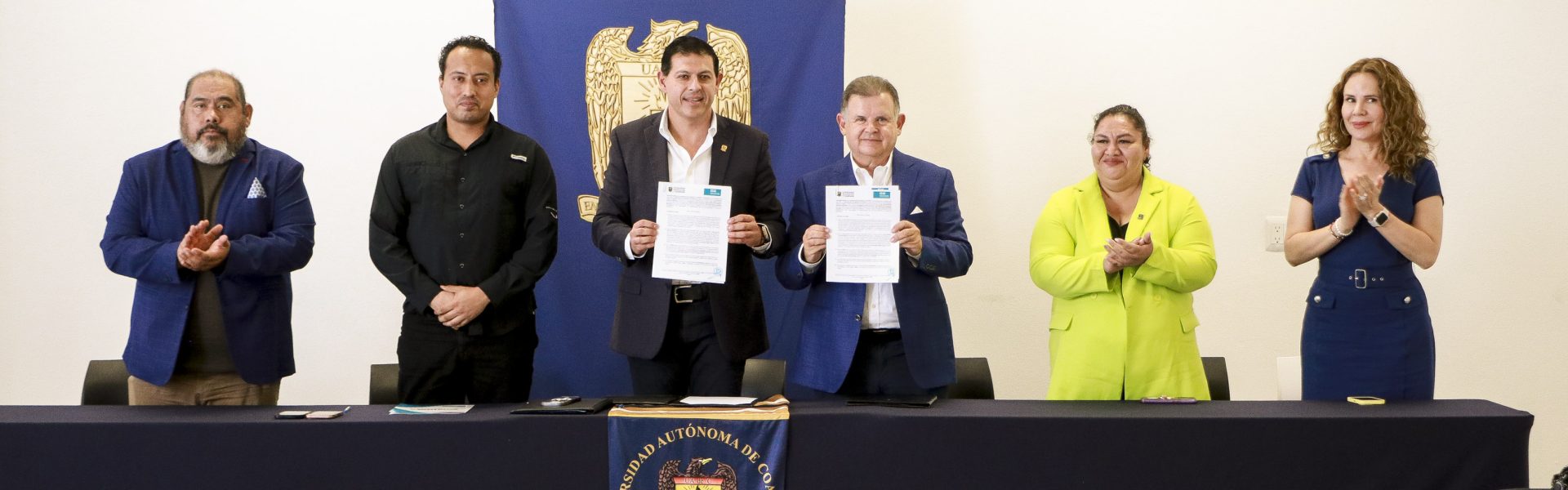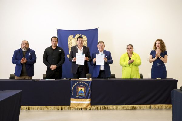 La firma se llevó a cabo en la Infoteca Campus Arteaga, a donde asistió el rector de la máxima casa de estudios, Octavio Pimentel Martínez, el director general de CEAS, José Lauro Villarreal Navarro, el secretario de Vivienda y Ordenamiento Territorial, Ángel Mahatma Sánchez Guajardo, las coordinadoras de Unidad Saltillo y Torreón, Eva Kerena Hernández Martínez y Sandra López Chavarría y el docente e investigador de la Universidad, Cristóbal Noé Aguilar González.