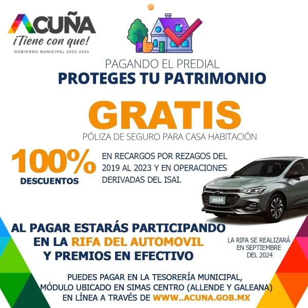 3 Septiembre 2024; Acuña, Coahuila.- De trascendencia para las familias resulta en pago del predial y la obtención gratuita de póliza de seguro contra incendios y daños hidrometeorológicos, así lo señaló el tesorero municipal Carlos Donato Pérez Reyes.
