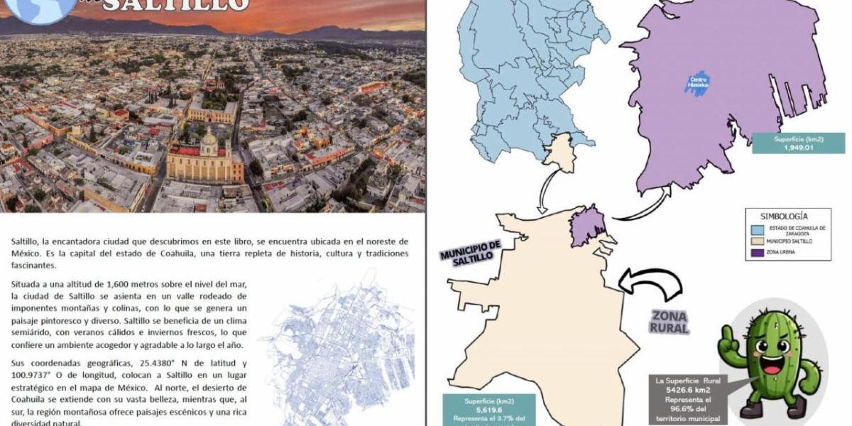 “Explora Saltillo, un Atlas para Pequeños Exploradores» nació porque en el 2023 llevamos a cabo un proyecto para trabajar con información territorial en primarias públicas y nos dimos cuenta que no existía información específicamente de Saltillo”, dijo.