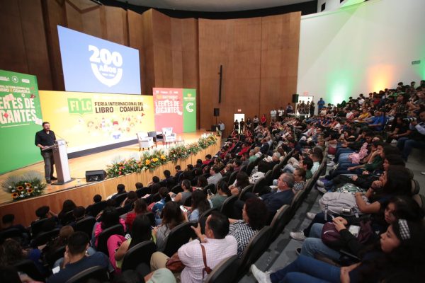 Ante la Presidenta de la Junta de Gobierno del Congreso del Estado, Luz Elena Morales Núñez; los Secretarios de Cultura y de Educación, Esther Quintana Salinas y Emanuel Garza Fishburn, respectivamente, así como del empresario César Cantú, Presidente del Grupo Alianza, encabezó la ceremonia que tuvo lugar en el Aula Magna del Centro Cultural de la UA de C, como parte de la FILC 2024.