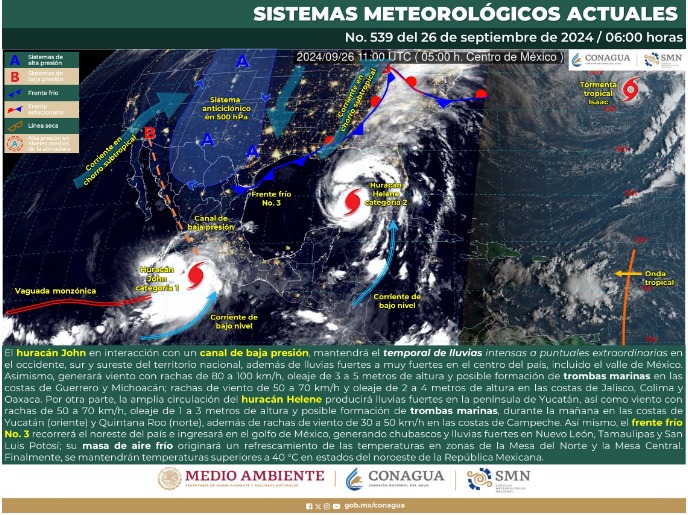 Se exhorta a la población a tomar precauciones, estar atenta a los avisos del Servicio Meteorológico Nacional y seguir las indicaciones de las autoridades.