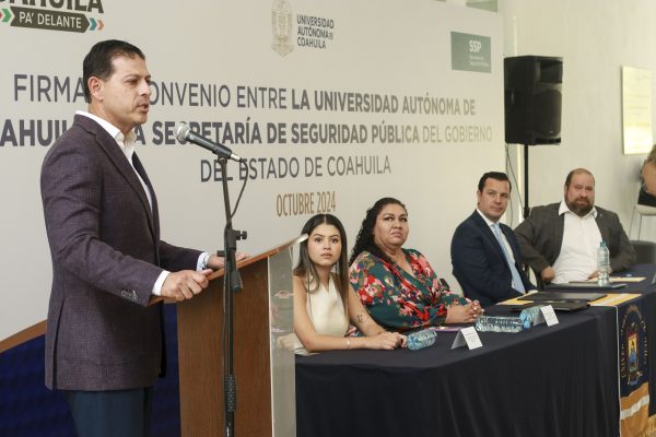 3 Octubre 2024; Arteaga, Coahuila.- Con la firma del convenio entre la Universidad Autónoma de Coahuila y la Secretaría de Seguridad Pública de Gobierno del estado de Coahuila, se fortalece el compromiso de establecer vínculos para ofrecer mayor seguridad a la comunidad universitaria, así como acciones académicas, entre ellas las 100 becas que se otorgarán para personal policiaco, administrativo y para sus hijos que desean incorporarse a la UAdeC.