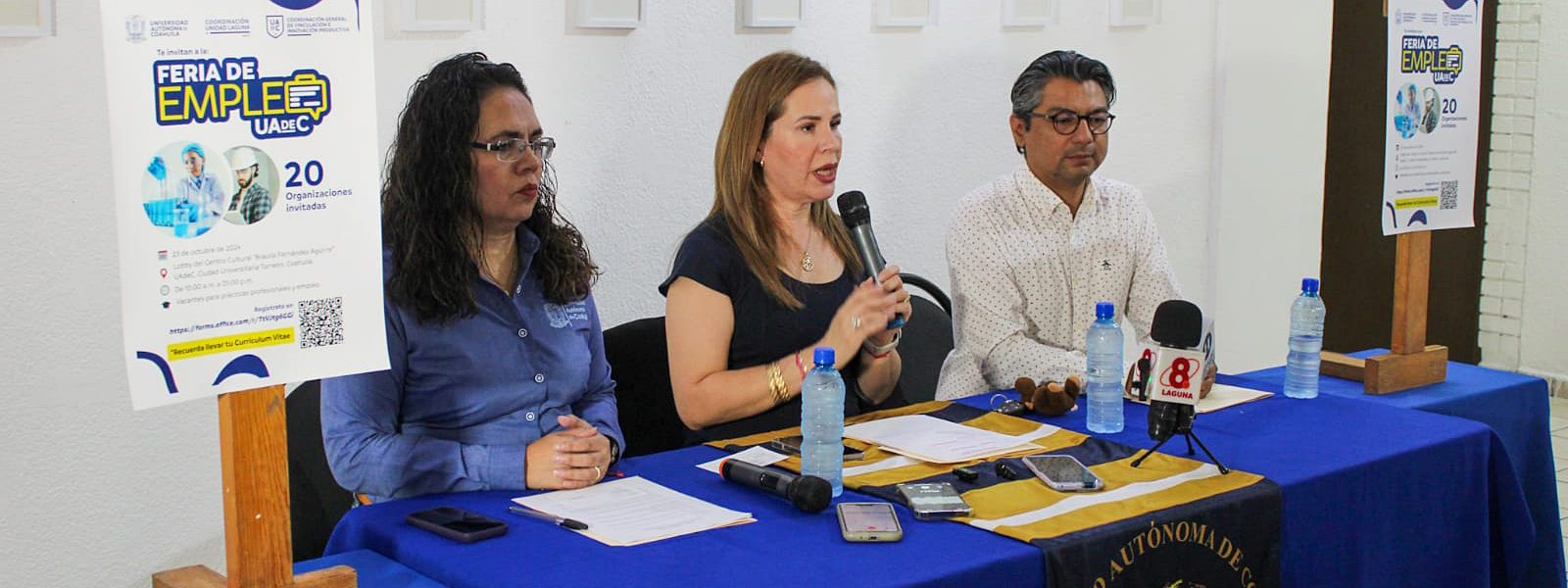 En conferencia de prensa, la coordinadora de Unidad Laguna, Sandra López Chavarría, el jefe de Vinculación, Ramiro Navarro Rosales y la responsable de Prácticas Profesionales en la Unidad Laguna, Verónica López, compartieron que el evento está dirigido a estudiantes y egresados de la máxima casa de estudios.