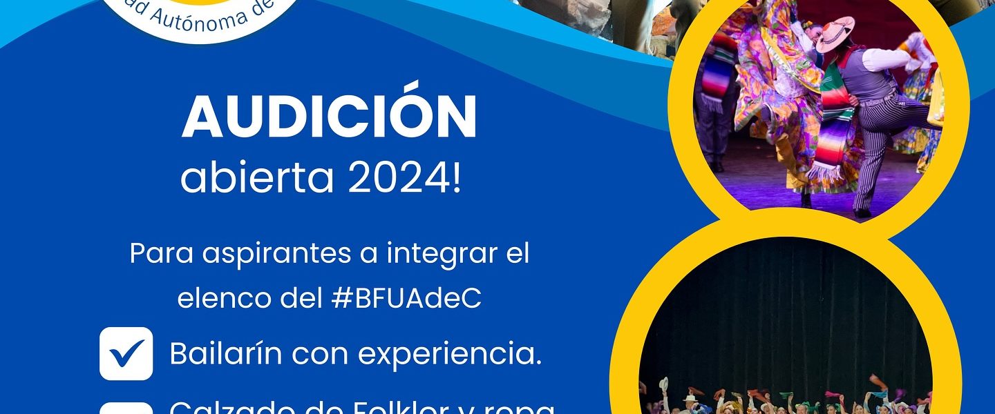 5 Noviembre 2024; Saltillo, Coahuila.- La Universidad Autónoma de Coahuila a través de la Coordinación General de Difusión y Patrimonio Cultural convoca a su comunidad universitaria y público en general con experiencia en danza folklórica, a participar en la “Audición 2024” para integrarse al elenco del Ballet Folklórico de la UAdeC.