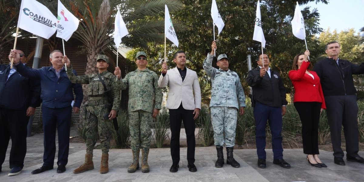 En el arranque en Parque Centro estuvieron presentes el teniente coronel de infantería Esteban Salazar León, comandante del 69 Batallón; el teniente de infantería Saúl Uriel Cruz en representación de la Guardia Nacional; Alejandro Pepi de la Peña, presidente de Canaco Saltillo; el comandante Simón Pérez Saldaña, coordinador operativo regional de la región sureste de la Secretaría de Seguridad Pública del Estado; el regidor Jorge Albero Leyva García, presidente de la Comisión de Seguridad Pública y Tránsito en el Cabildo; y la regidora Lucía del Carmen Dávila Flores.