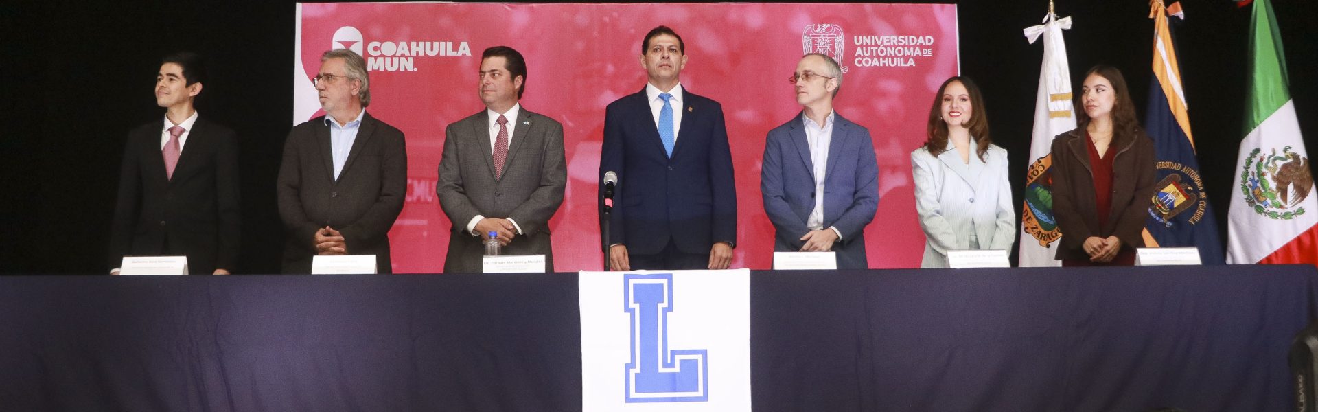 La ceremonia de inauguración se llevó a cabo en el Centro Cultural Universitario Campus Arteaga, con la presencia del rector de la máxima casa de estudios, Octavio Pimentel Martínez, el secretario de Inclusión y Desarrollo Social, Enrique Martínez y Morales, el cónsul de Francia en Monterrey, Guillaume Pierre, el cónsul de Estados Unidos para Educación, Prensa y Cultura en Monterrey, Jerome Sherman, el secretario general de Coahuila MUN, Guillermo Sena, la subsecretaria, Anhely Sánchez y la secretaria de Planeación, Betelgeuse de la Fuente.