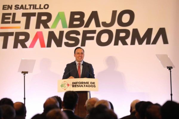 “Quiero hacer un especial reconocimiento, una felicitación a nuestro amigo Chema Fraustro por estos tres años de trabajo, tres años de esfuerzo; todo esto representa resultados contundentes y eso no solamente se ve, también se siente aquí en Saltillo”, apuntó el Ejecutivo Estatal.