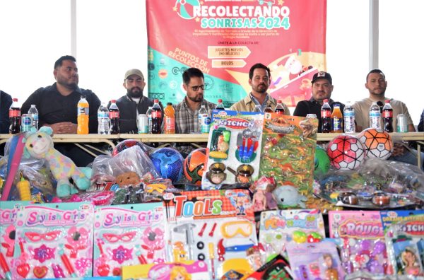 20 Diciembre 2024; Torreón, Coahuila.- La Dirección de Inspección y Verificación Municipal, en conjunto con representantes de bares y centros nocturnos de la ciudad, logró reunir 600 juguetes no bélicos para repartir a niñas y niños de Torreón mediante la campaña “Recolectando Sonrisas 2024”.