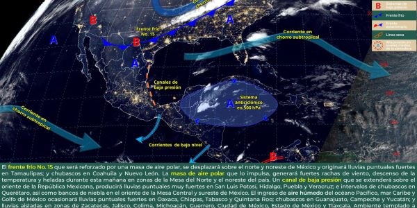 FRENTE FRÍO Nº 15 ORIGINARÁ CHUBASCOS, FUERTES VIENTOS Y DESCENSO DE TEMPERATURA Por Jorge Moreno 18 Diciembre 2024; Saltillo, Coahuila.- La Subsecretaría de Protección Civil del Estado informa que el frente frío número 15, reforzado por una masa de aire…