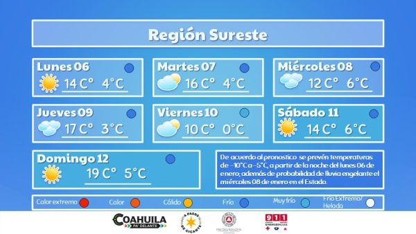 Manténgase informado por los medios oficiales de comunicación y atento a los avisos que emita el Servicio Meteorológico Nacional y la Subsecretaría de Protección Civil de Coahuila.