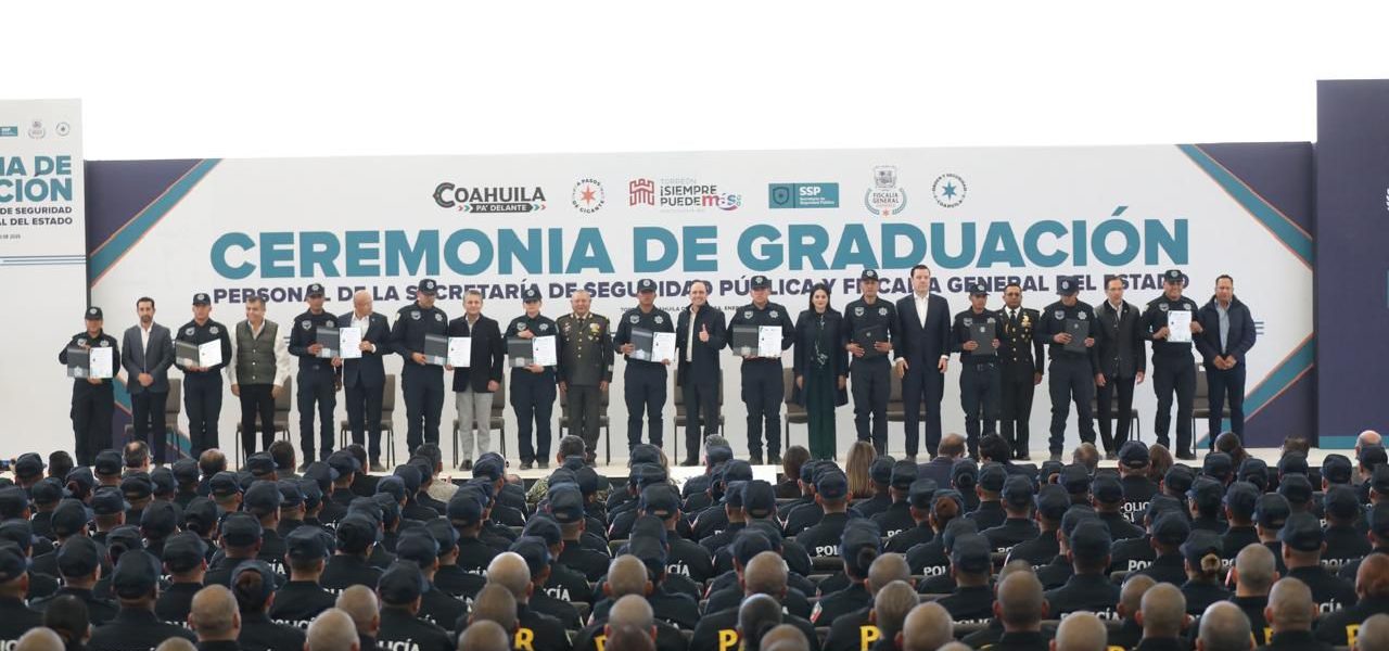 «Hoy es un gran día para la seguridad de Coahuila con la graduación de 491 nuevos elementos que se integran a la policía estatal, la policía de acción y reacción, los agentes del ministerio público, los peritos y los agentes de investigación criminal, quienes con su trabajo fortalecerán nuestro modelo de seguridad y justicia. Muchas felicidades a las y los graduados con quienes llevaremos a Coahuila pa’ delante a pasos de gigante», destacó el gobernador.