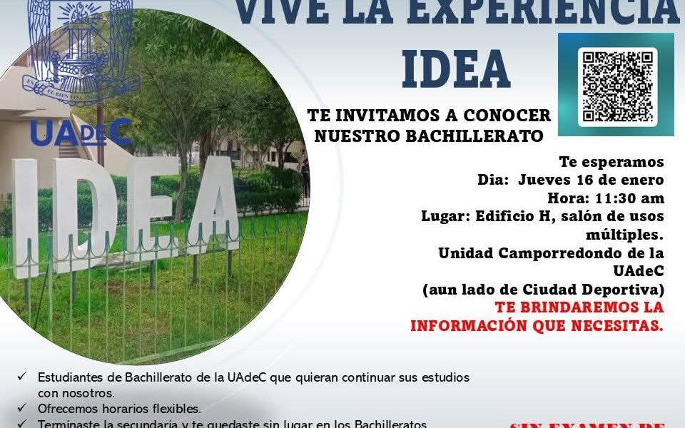 Participa en “Vive la Experiencia IDEA” y Estudia tu Bachillerato en la UAdeC
