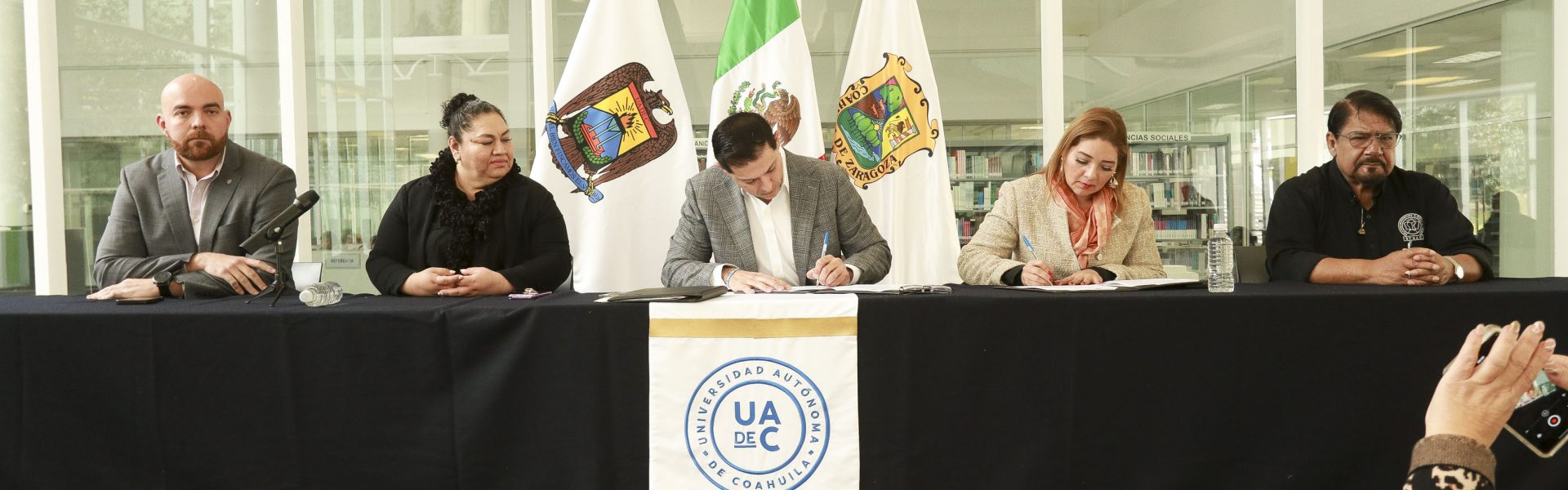 En el Lobby de Infoteca Arteaga, el documento fue signado por el rector de la máxima casa de estudios, Octavio Pimentel Martínez y la representante de las Guarderías con las que se firma el convenio, María Paulina Monsiváis Hernández de la Estancia Infantil Piccolo Mondo A.C., como testigos la coordinadora de Unidad Sureste, Eva Kerena Hernández Martínez, el Oficial Mayor, Josué Elí Garza Carrales y el secretario general del Sindicato de Trabajadores de la UAdeC, Rubén Antonio Favela.