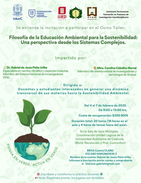 Invita UAdeC Unidad Laguna a Participar en el Curso-Taller “Filosofía de la Educación Ambiental para la Sostenibilidad: Una Perspectiva desde los Sistemas Complejos”