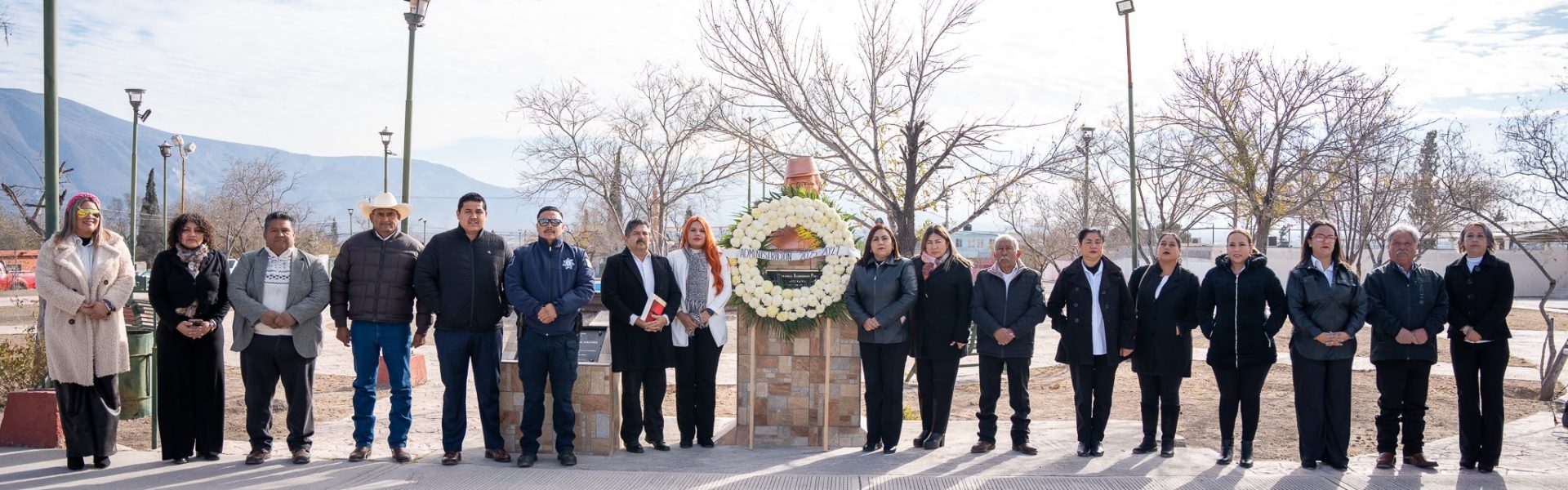 23 Enero 2025; Castaños, Coahuila.- Para honrar la memoria del Coronel Ildefonso Fuentes en el 196 aniversario de su natalicio, la Alcaldesa Yesica Sifuentes Zamora encabezó la ceremonia cívica, donde se colocó una ofrenda floral.