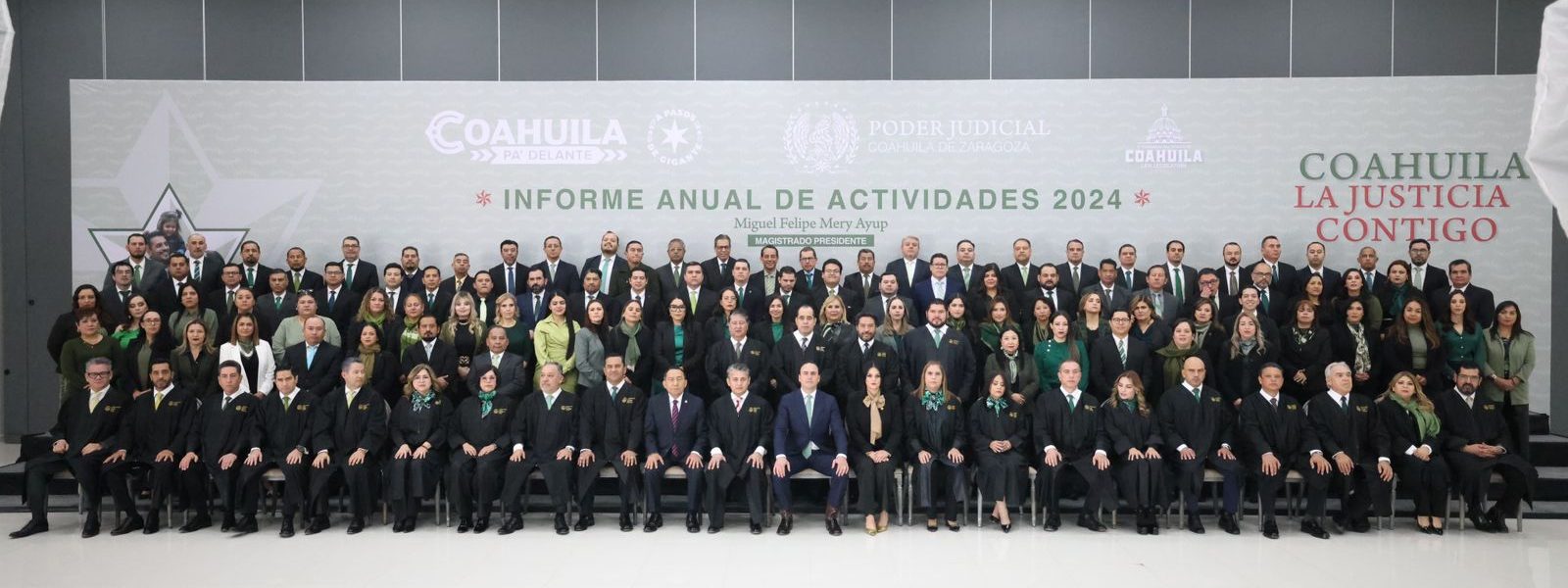 Con la presencia de Rafael Guerra Álvarez, magistrado presidente del Poder Judicial de la Ciudad de México y de la Comisión Nacional de Tribunales Superiores de Justicia de los Estados Unidos Mexicanos; así como de Luz Elena Morales Núñez, diputada presidenta de la Junta de Gobierno del Congreso local; y el alcalde Román Alberto Cepeda González, Manolo Jiménez felicitó a todos quienes integran el Poder Judicial en Coahuila por el gran trabajo que han venido realizando en beneficio de las y los coahuilenses.