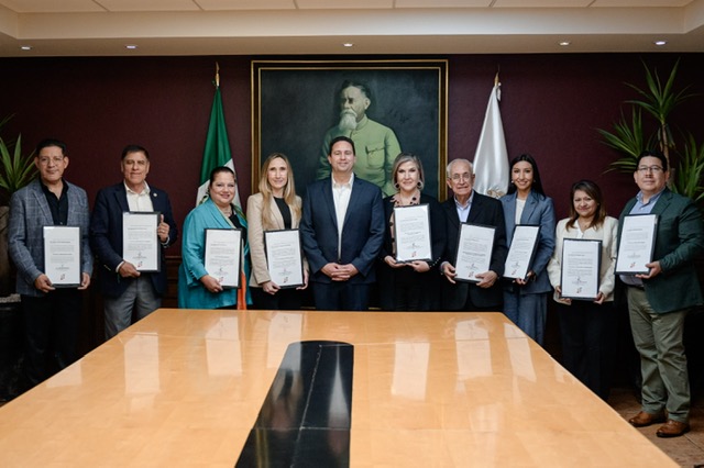 En las instalaciones del Salón Carranza hizo entrega de nombramientos a Patricia Alejandra Peña Aguirre como contralora municipal; Leonardo Guerrero Dávila, director de Pensiones; y Leticia Aurora Rodarte Rangel, directora del Instituto Municipal de Cultura.