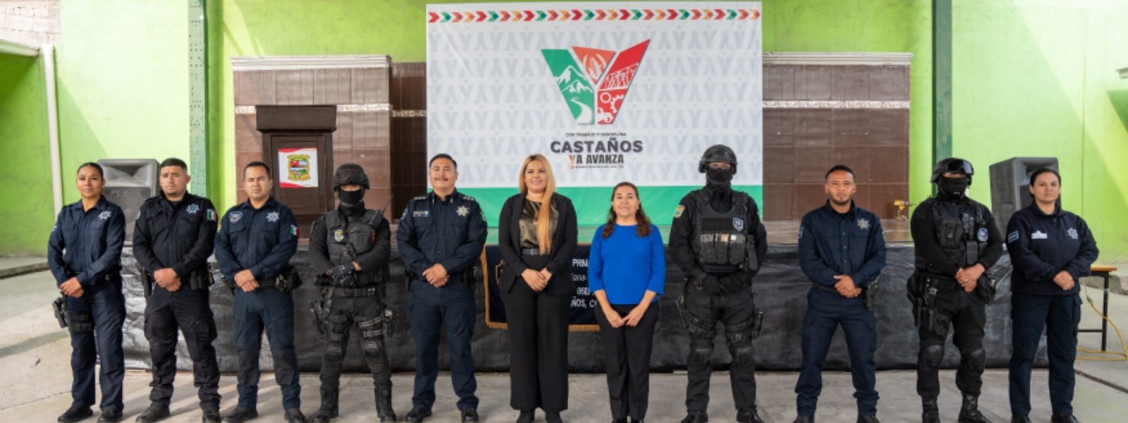 De igual manera, la presidenta municipal hizo énfasis a la presencia de elementos policiacos municipales y estatales en la ceremonia, los cuales todos los días trabajan por la seguridad de las familias de Castaños.