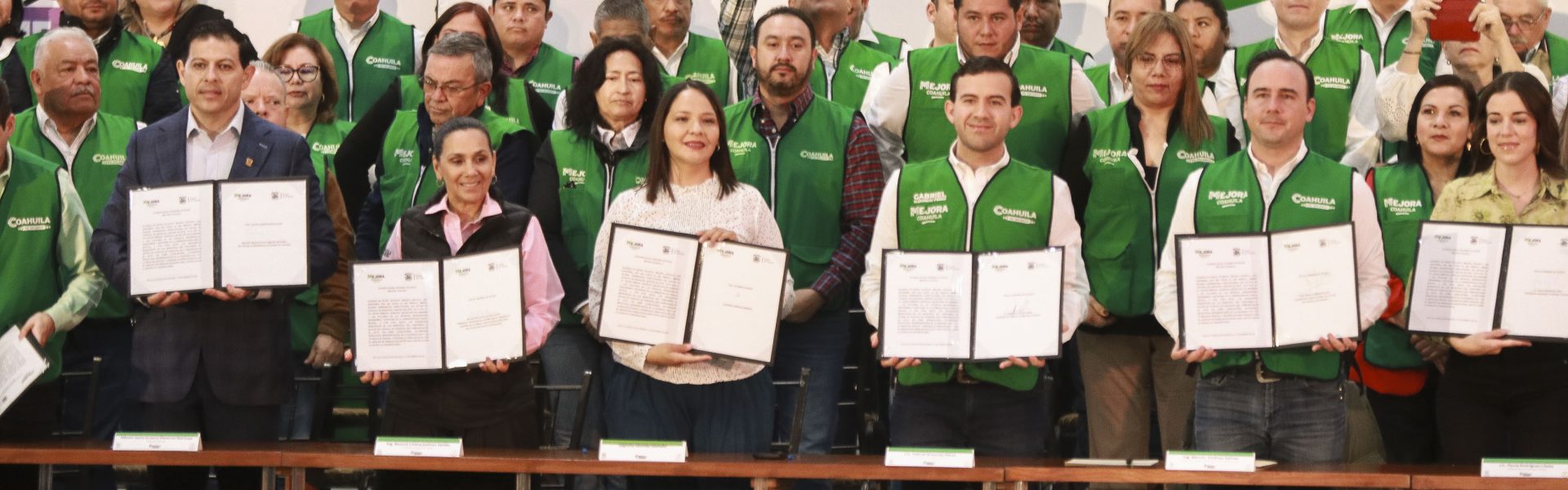 13 Febrero 2025; Arteaga, Coahuila.- La Universidad Autónoma de Coahuila participó en la firma de la Estrategia “Mejora Coahuila”, que impulsa el Gobierno del Estado, en conjunto con los sectores público, social, educativo y empresarial, con el compromiso de potencializar y eficientar las obras y acciones para la construcción de una plataforma social integral en apoyo a la población en los ámbitos de Familia, Casa, Colonia, Seguridad, Educación, Economía, Inclusión, Campo, Salud y Medio Ambiente.