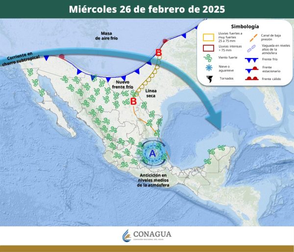 24 Febrero 2025; Saltillo, Coahuila.- La Secretaría de Gobierno, a través de la Subsecretaría de Protección Civil Estatal, informa que el miércoles 26 de febrero un nuevo frente frío se aproximará e ingresará a la frontera norte de México, propiciando rachas fuertes de viento, así como lluvias aisladas en Coahuila.