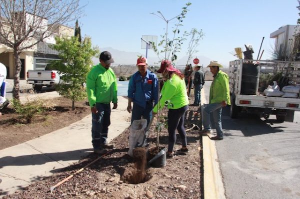 Mientras que personal del Vivero Municipal reforestó el área verde del fraccionamiento Los Rosales con truenos y fresnos, así como plantas de ornato como son los ajillos y romeros.