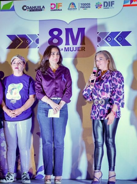 Teresita Escalante, Presidenta honoraria del DIF municipal, señaló que con la iluminación de la Presidencia Municipal y algunas vialidades de la ciudad como Miguel Ramos Arizpe y Manuel Acuña, se les reconoce a las mujeres su poder y su contribución a la sociedad.